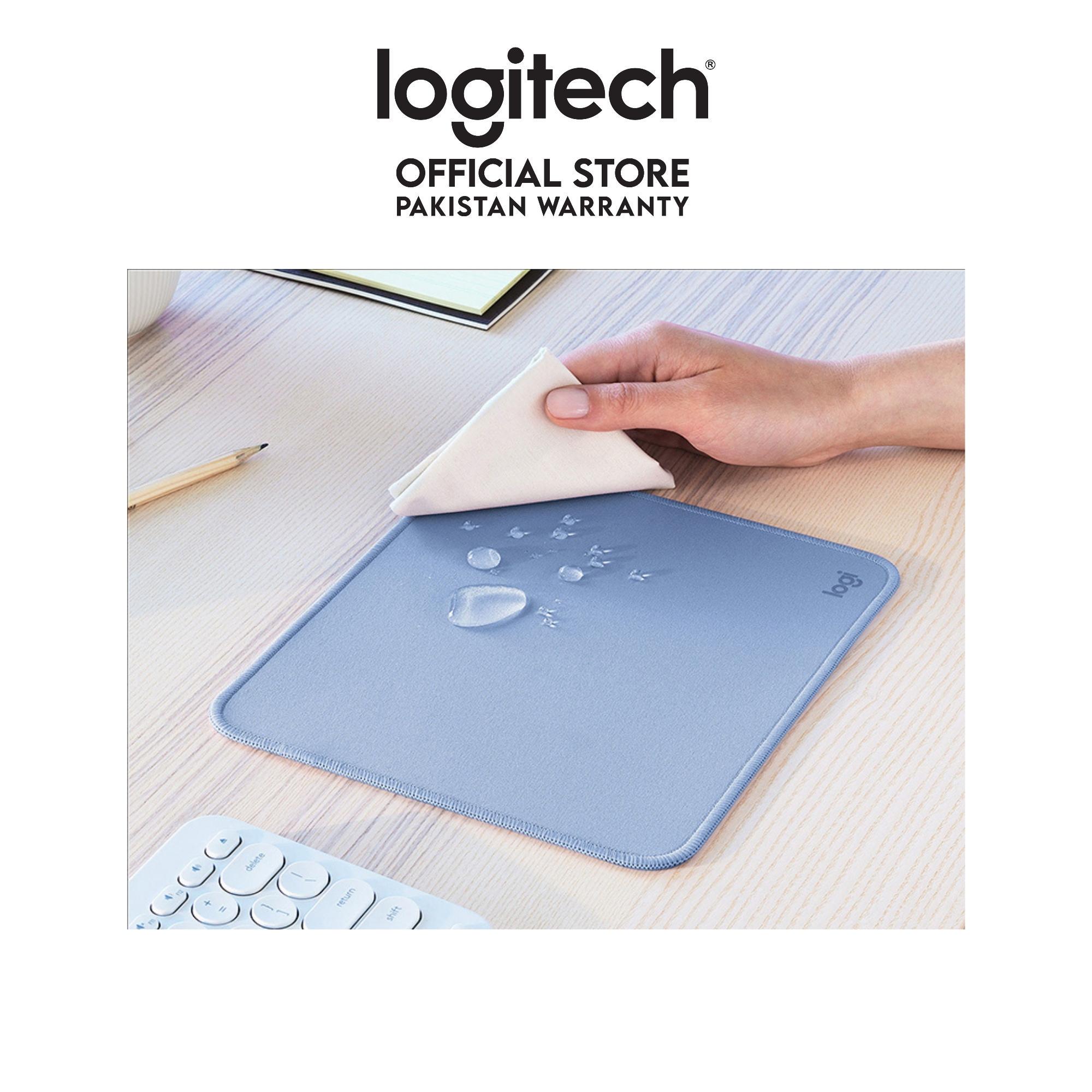 Logitech Mouse Pad features a spill-proof coating that withstands accidental mishaps, so liquids can easily be wiped away. 3Tested under limited conditions. Wipe clean with a damp cloth after max. 2 minutes.